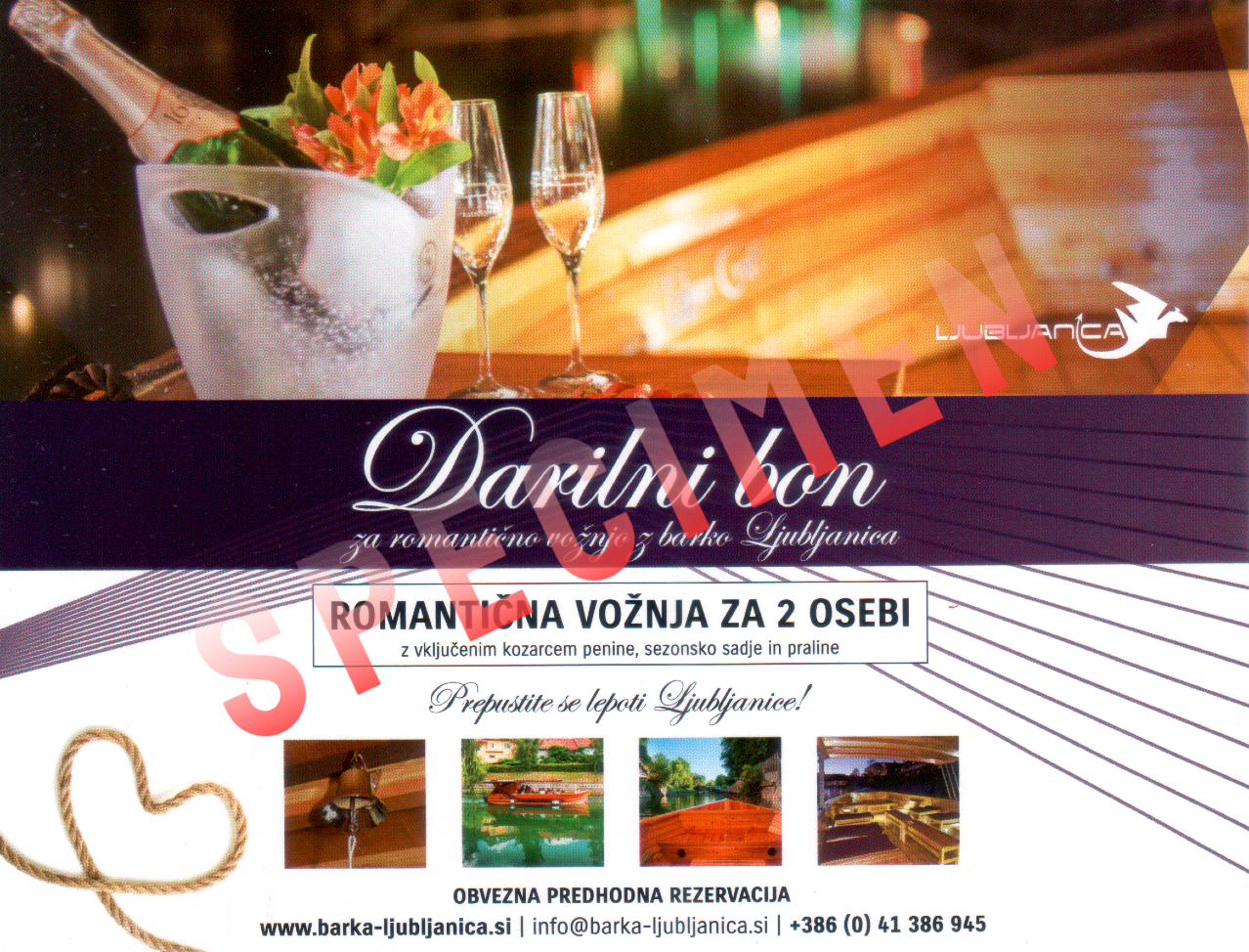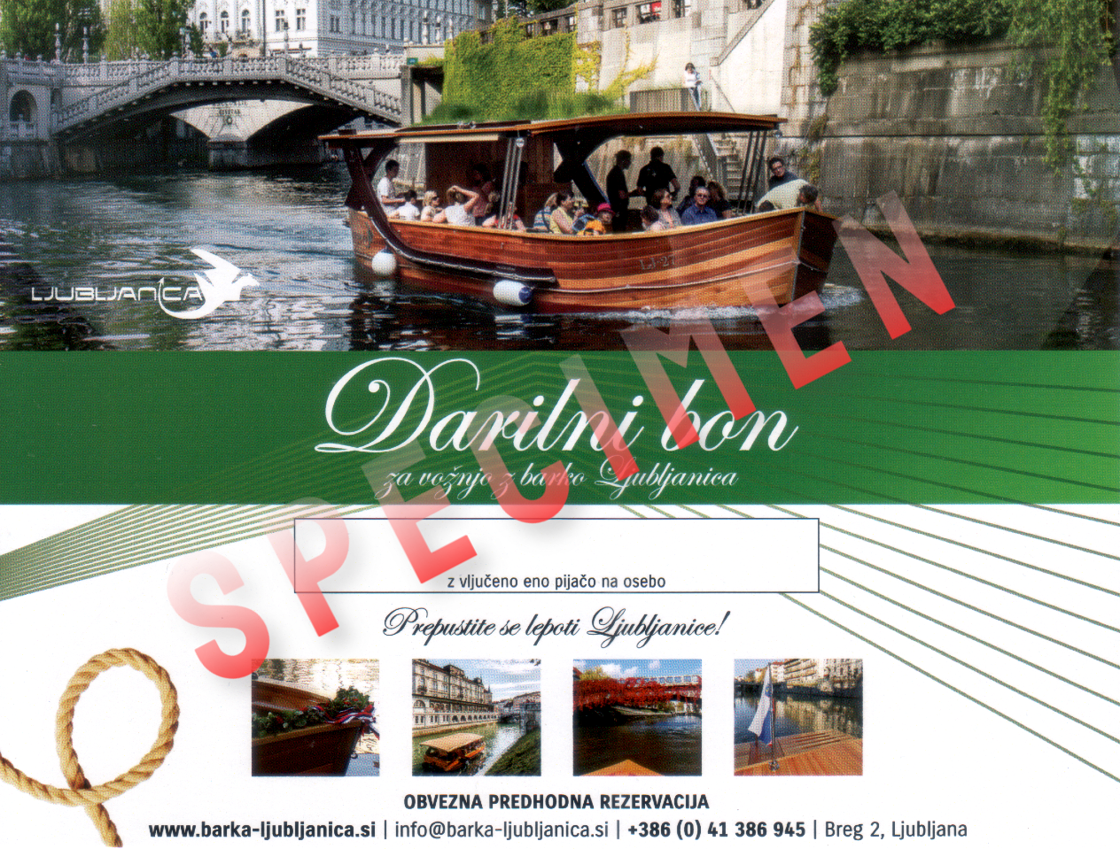 Darilna bona je možno naročiti tudi preko elektronske pošte info@barka-ljubljanica.si.